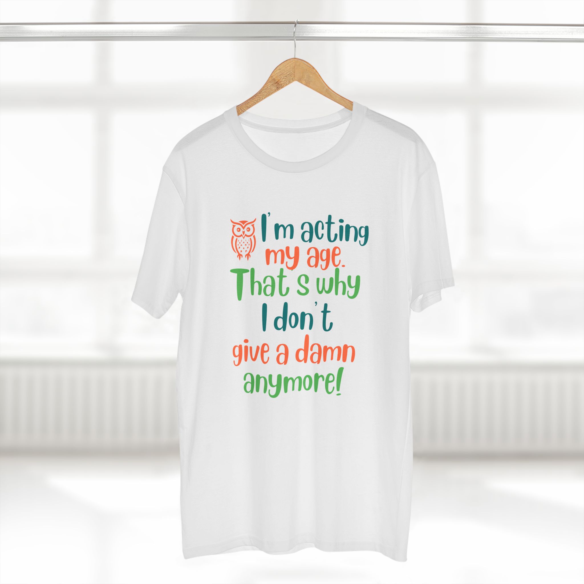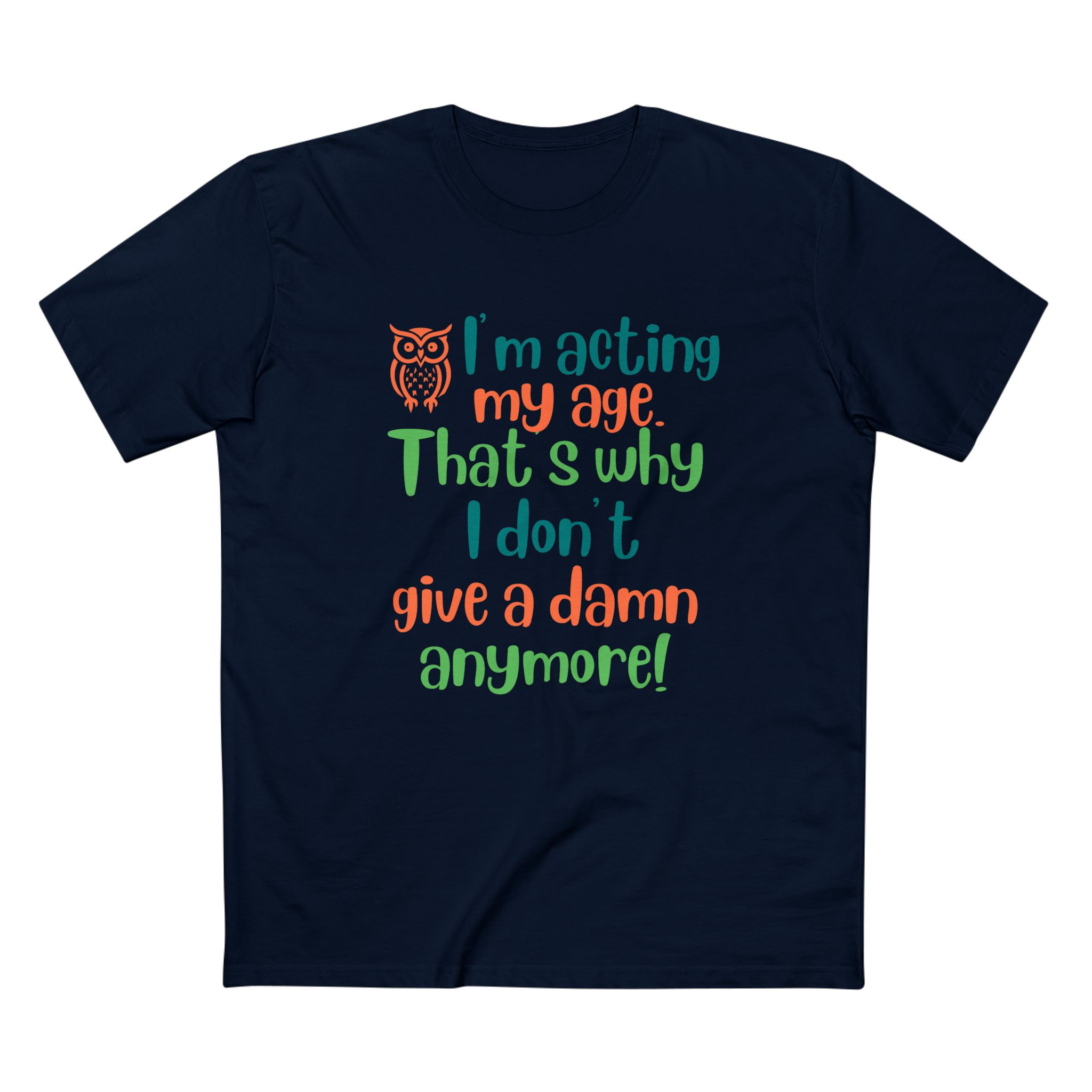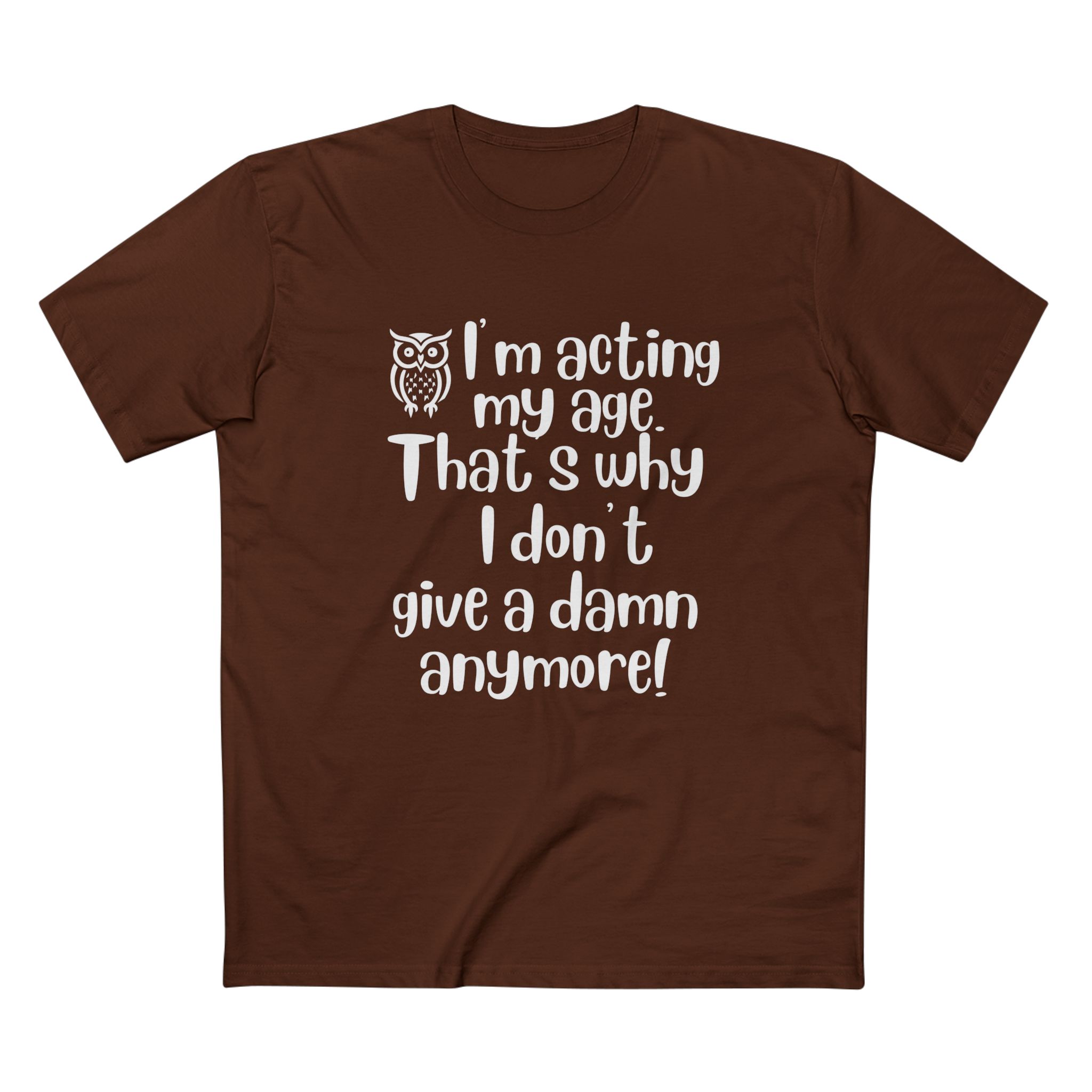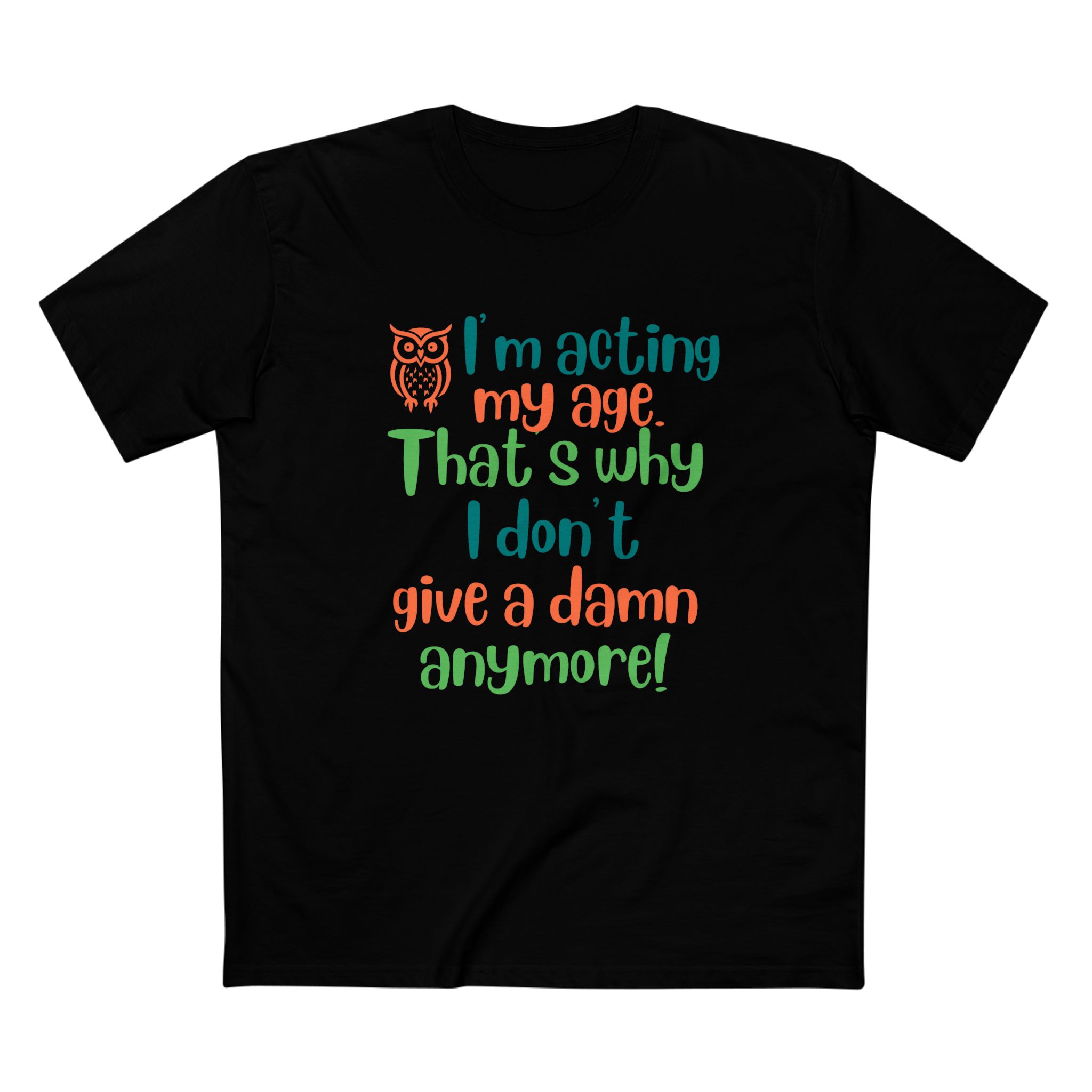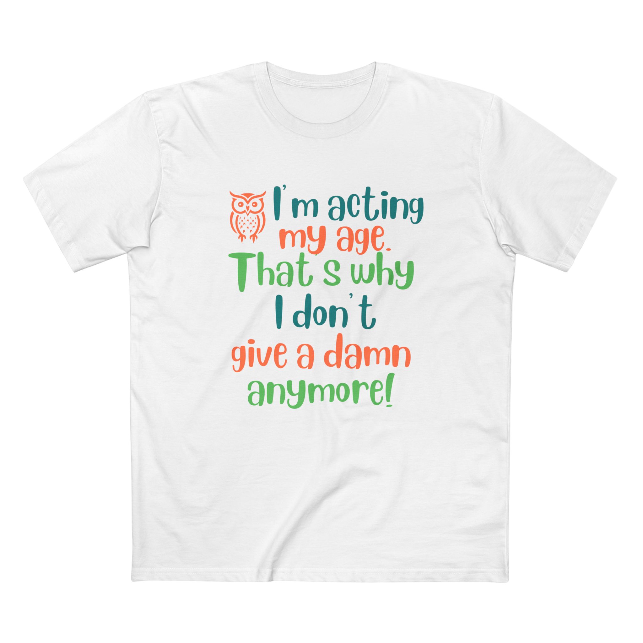 ✨ Fearlessly Empowering Message: Features the humorous and empowering quote “I Am Acting My Age. That’s Why I Don’t Give a Damn Anymore” in a clean, stylish font — a perfect reflection of confidence, humor, and life experience.